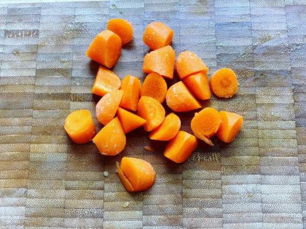 Cà rốt rửa sạch, gọt vỏ rồi cắt miếng nhỏ.