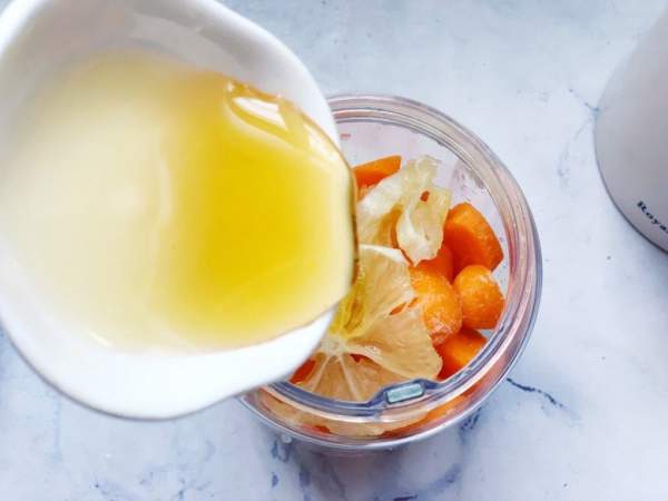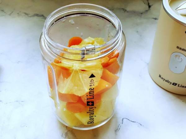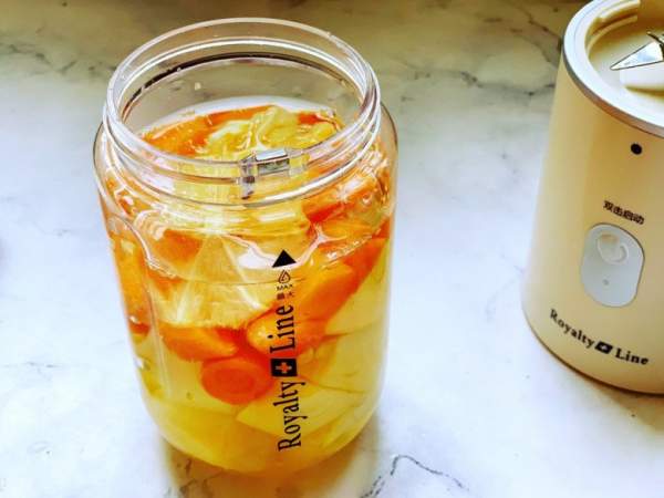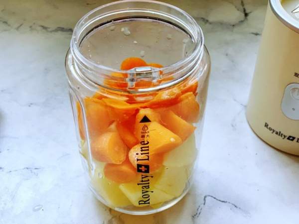 Sau đó cho táo và cà rốt vào máy xay trái cây.