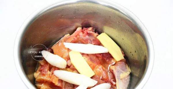 Chuẩn bị nguyên liệu: 2 cái đùi gà lớn, hành, gừng, rượu nấu ăn.