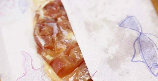 Bước 4: Gà sau khi ướp xong, dùng khăn bếp lau khô bề mặt.