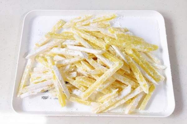 Cho khoai đã tẩm bột vào ngăn đá ít nhất 2 tiếng. Bạn có thể làm khoai số lượng nhiều, phần chưa dùng đến thì bỏ vào túi nilon hoặc hộp đậy nắp kín và để nguyên trong ngăn đá. Lúc cần dùng thì đem ra chiên.