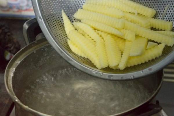 Bước 2: Luộc sơ khoai tây trước khi chiên