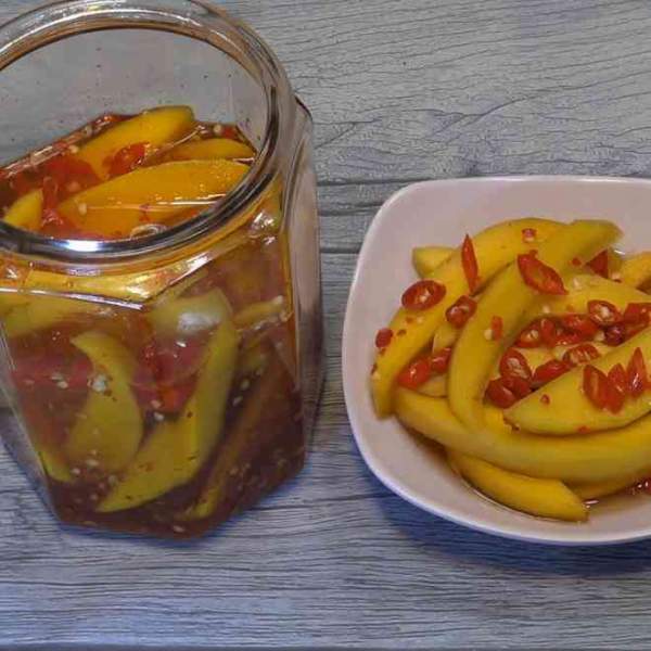 - Để món xoài xanh ngâm nước mắm ớt không bị lên men thành rượu thì cần nấu nước mắm sôi và để nguội hẳn hoàn toàn mới đổ vào hũ xoài.