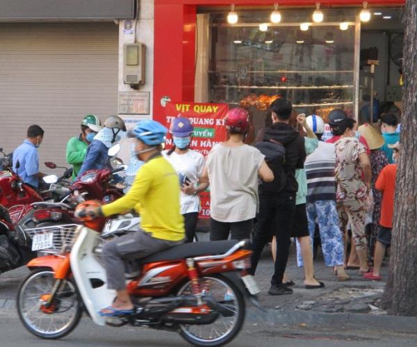 Người dân xếp hàng mua heo quay sáng nay tại một tiệm trên đường Trần Quang Khải (quận 1) - Ảnh: Ng.Ánh