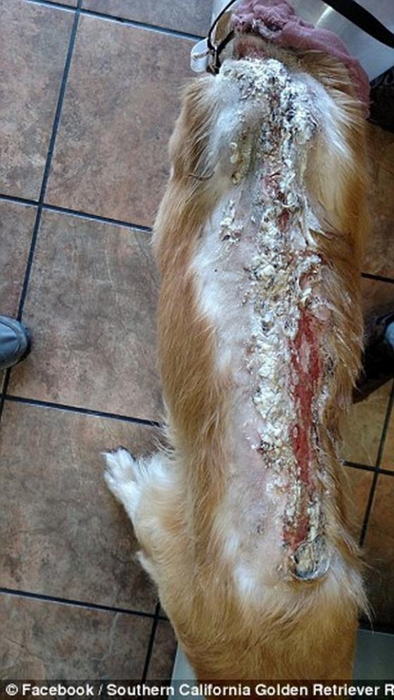 Chú chó bị lở loét dọc sống lưng vì bỏng