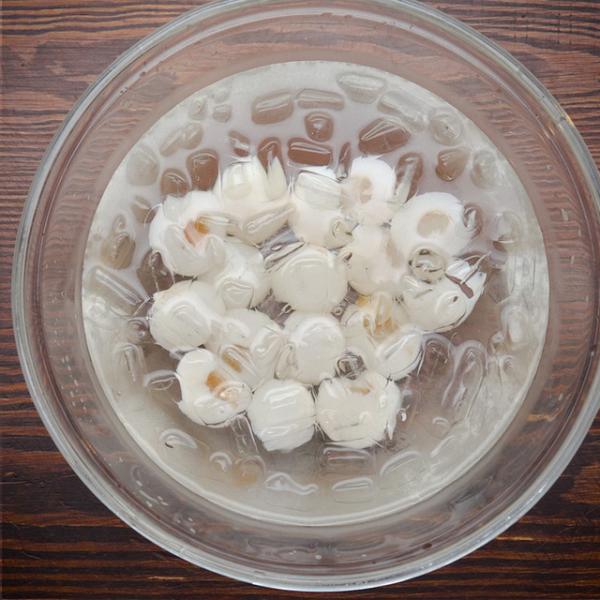 Bạn lặp lại thao tác trên cho đến khi tách hết hạt vải. Ngâm vải trong nước lạnh khoảng 10 phút thì vớt ra, để ráo.