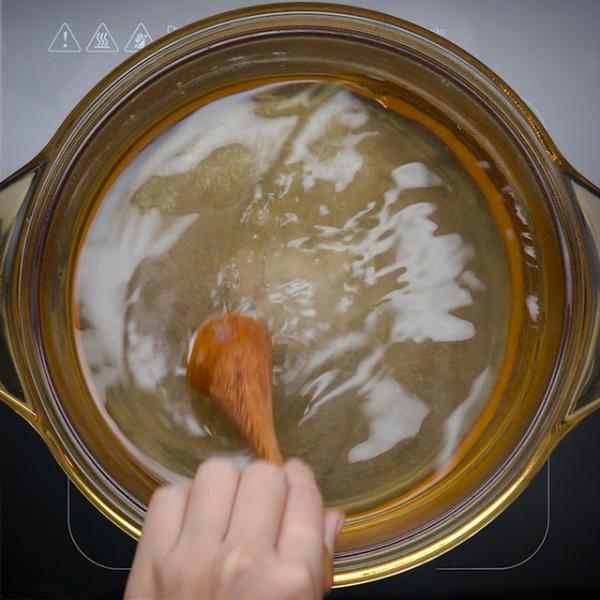 Khuấy nhẹ trong khi đun để đường và muối tan vào nước