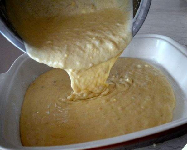 6. Trộn tất cả các hỗn hợp đã sơ chế ở các bước trên bao gồm chuối nghiền, bột mì, bơ đường trứng, bơ sữa rồi cho vào khuôn bánh và chuẩn bị nướng.