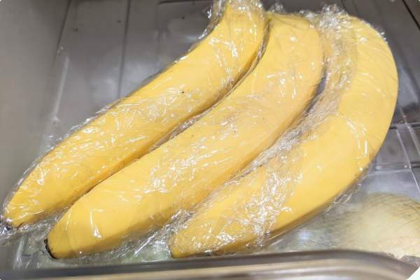 Dùng màng bọc thực phẩm/giấy bạc bọc kín từng quả chuối sau đó để trong ngăn mát của tủ lạnh. Bằng cách này chuối chín có thể để được lâu mà không sợ nhũn hay thâm đen.
