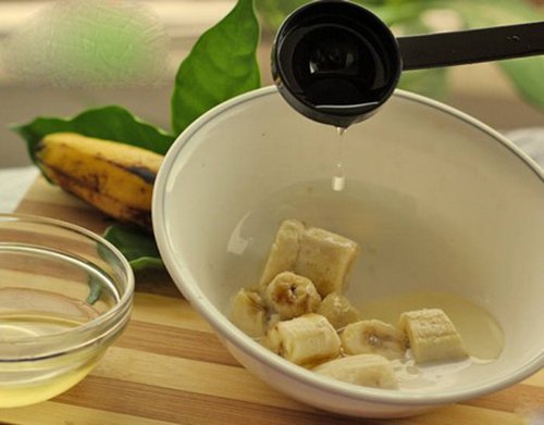 Dùng thìa đảo đều các thành phần sau đó đổ tất cả vào máy xay sinh tố để xay nhỏ thành hỗn hợp nhuyễn rồi đổ ra bát. Kết thúc sau 4 bước đơn giản, bạn đã có được kem dưỡng tóc từ chuối chín.