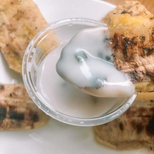 Nếu chuối là nhân vật chính của món ăn này thì nước cốt dừa như người “bạn đồng hành” không thể thiếu, thậm chí món ăn có thể giảm đi phần lôi cuốn nếu như vị nước chấm không đạt.