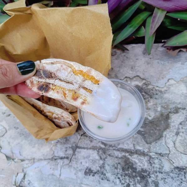 Miếng chuối nướng còn nguyên hơi ấm nóng, phảng phất thơm dịu nhẹ, chấm cùng nước cốt dừa sền sệt, cái dẻo bùi và ngậy béo của hai nguyên liệu kết hợp với nhau trong khoang miệng mang đến hương vị gây nghiện khó cưỡng.