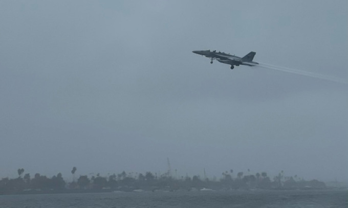 Chiến đấu cơ EA-18G Growler thuộc Phi đoàn Tác chiến điện tử (VAQ) số 135 của hải quân Mỹ hôm 12/2 lao xuống vịnh San Diego, bang California. Hai phi công phóng ghế thoát hiểm an toàn và không gặp nguy hiểm tính mạng.