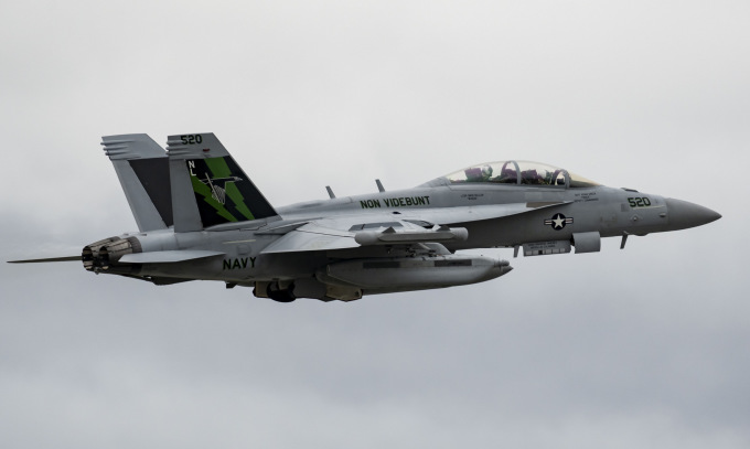 Chiếc EA-18G của VAQ-135 không lâu trước khi lao xuống biển hôm 12/2. Ảnh: Aviationist