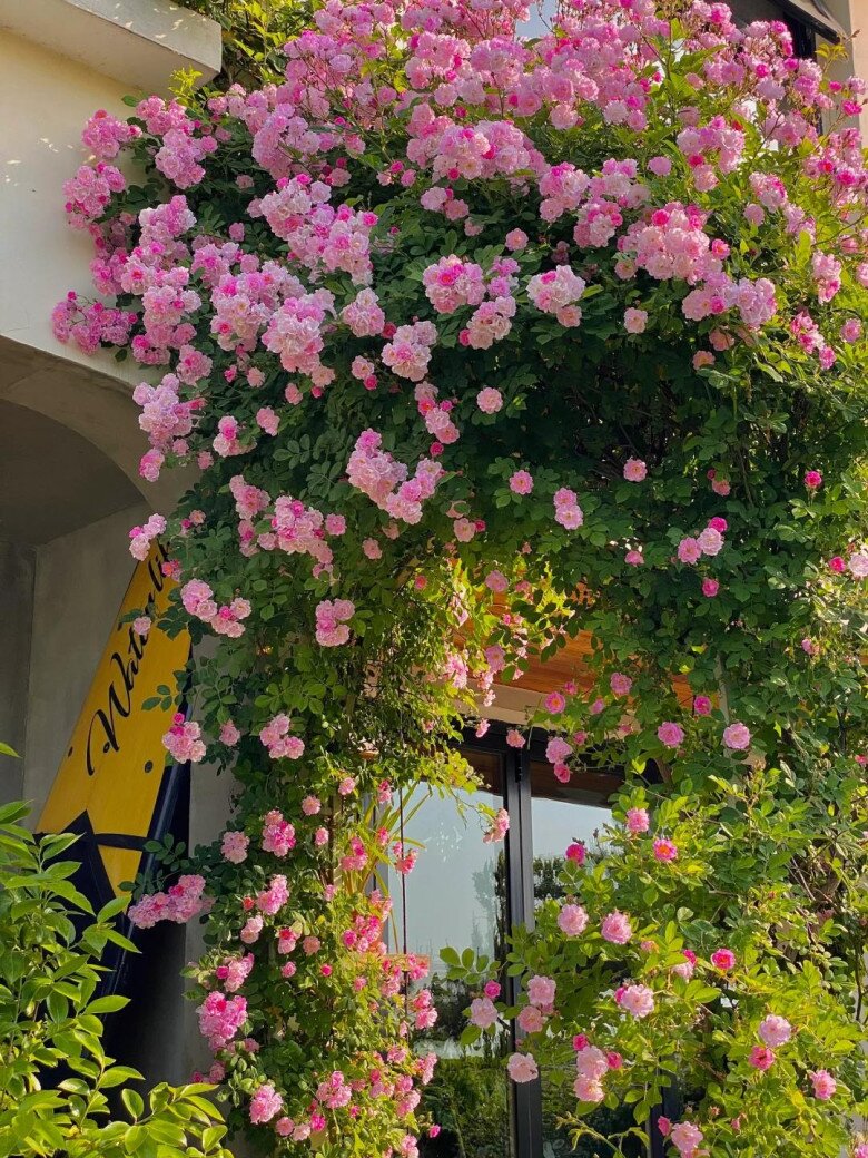 Bức tường hoa hồng leo của nhà cô gái.