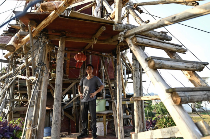 Các tầng cao của ngôi nhà được Chen cơi nới bằng gỗ, dây thép. Ảnh: Pedro PARDO/AFP