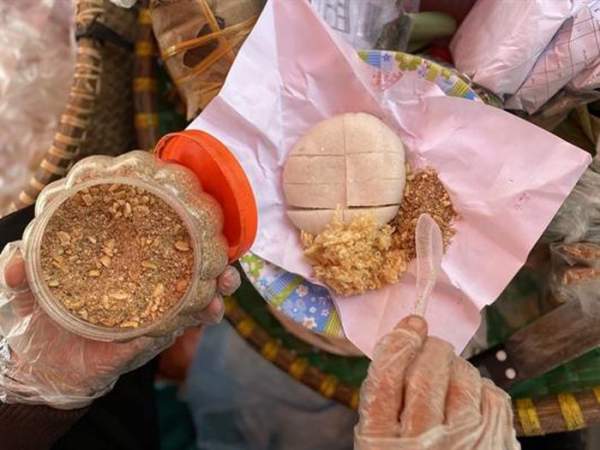 Cơm nắm, chỉ đơn giản là gạo vo sạch cho vào nồi nấu thành cơm rồi được vo tròn. Tưởng chừng là dễ. Thế nhưng, không phải ai cũng có thể làm được cho khéo, cho ngon. Để thứ cơm ấy có thể nắm, dính và quyện vào nhau thì lúc đong nước, không được ít quá cơm sẽ khô, không nắm nổi; mà nhiều nước thì cơm sẽ nhão… Hơn nữa, cơm phải nắm lúc còn nóng thì các hạt mới có độ quyện thành một khối. Thành phẩm của cơm nắm phải nhìn rõ những hạt cơm trong trong, trắng tinh đẹp mắt. Mỗi khi có khách tới mua hàng, tôi thích nhìn bà cầm con dao nhỏ, xắt nhẹ từng miếng trên nắm cơm và sau đó phủ lớp muối vừng vàng rụm. Vị dẻo ngọt của cơm cùng chút đậm đậm, bùi bùi của muối vừng tạo nên dư vị thật đặc biệt. Mải mê kể về cơm nắm, bà không quên giới thiệu về muối vừng… Muối vừng là thứ vừng được giã nhỏ cùng lạc, trộn thêm chút muối cho đậm vị. Đã thành thói quen, cứ đến vụ thu hoạch lạc, vừng; bà lại tìm lựa của những người lao động ở quê. Sau khi phơi khô, lựa kỹ bà mang về và bọc kín, dùng đến đâu sẽ chế biến đến đấy. Không biết mọi người làm muối vừng thế nào nhưng với bà, muối vừng còn có bí kíp riêng, muối phải được rang với vừng với lạc để có thể để được lâu mà không bị ỉu. Thế nhưng, gánh cơm nắm muối vừng của bà nhanh hết hàng lắm, làm sao có chuyện muối vừng để lâu được. Có lẽ, bí kíp kì diệu nhất là sự cần cù, tần tảo để làm nên món quà thanh tao mà gần gũi.
