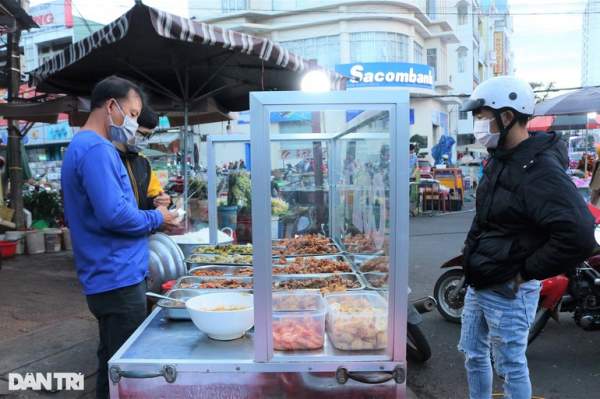 Đối diện với quán của ông Nam là quầy cơm tô của anh Nguyễn Văn Trung (32 tuổi, trú phường Hoa Lư, TP Pleiku, Gia Lai) cũng rất đắt khách.