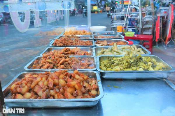 Ông Nam vui vẻ chia sẻ: "Điểm đặc biệt ở món ăn này là nhiều món hơn và cơm trắng dẻo, thơm, luôn luôn nóng hổi kèm với thức ăn phong phú, sạch sẽ. Mở bán từ 17h - 22h mỗi chiều tối, trung bình một ngày tôi bán được 300 tô".