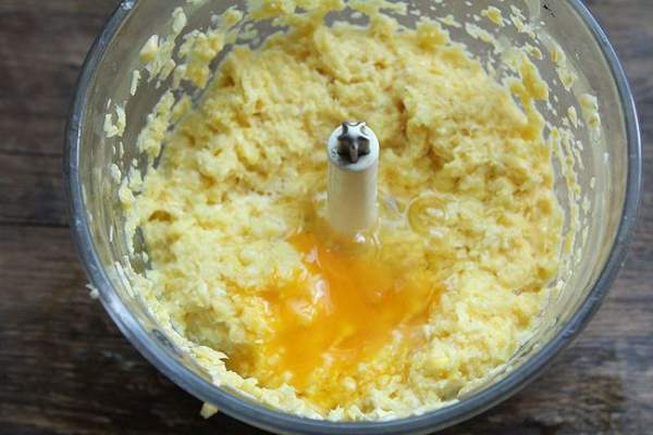 Cho ngô vào máy xay, xay nhuyễn. Thêm một chút nước và đánh nhuyễn ngô. Sau đó đập trứng gà vào khuấy đều. Nếu thấy hỗn hợp khô, có thể cho thêm 1 quả trứng.