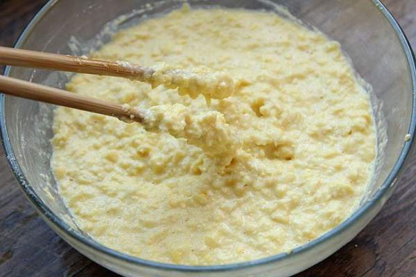 Đổ hỗn hợp ngô ra bát lớn. Ngô ngọt nên đã ngọt sẵn, nếu thích ngọt hơn bạn có thể thêm lượng đường phù hợp vào.