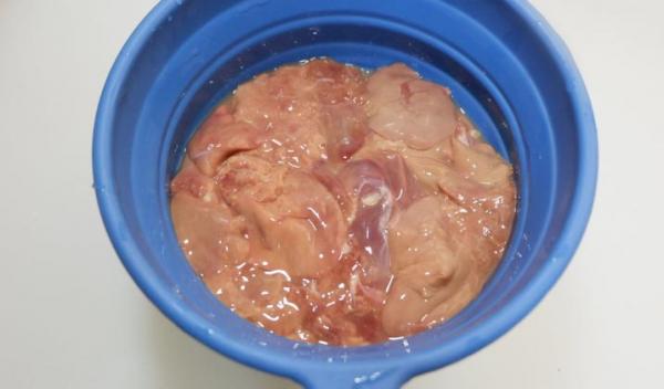 Gan gà tươi mua về ngâm trong nước khoảng 1 tiếng, rửa sạch nhiều lần.