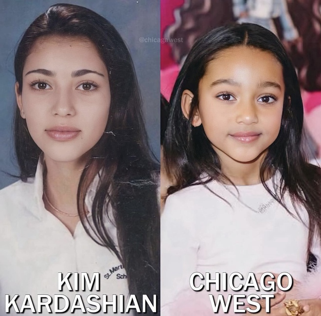 Đặc biệt, Chicago được nhận xét hầu như được thừa hưởng hết nét đẹp từ mẹ. So sánh ảnh cô bé với Kim thời trẻ, nhiều người không khỏi ngỡ ngàng vì quá giống nhau. Ngay đến cả nữ tỷ phú cũng từng nhiều lần gọi Chicago là "em bé song sinh của tôi"
