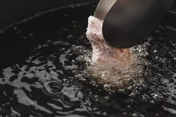 - Khi dầu đã nóng già, nhẹ nhàng thả lần lượt từng miếng gà vào chảo và chiên khoảng 12 phút, lật gà thường xuyên để chúng được chín vàng.