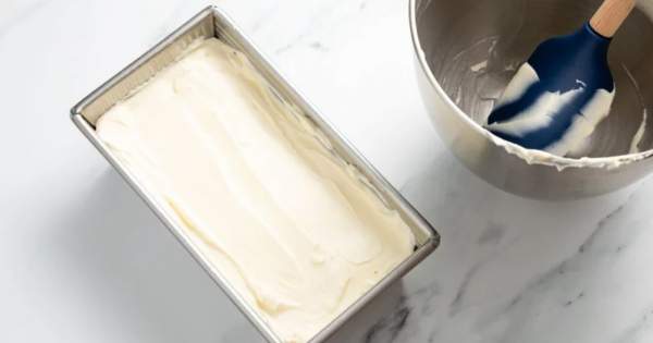 Trong quá trình đổ kem vào khuôn, bạn nên sử dụng khuôn kim loại để làm kem đông nhanh hơn. Bọc nó bằng màng bọc thực phẩm hoặc đậy nắp kín để đảm bảo quá trình đông diễn ra trong vòng 4 tiếng đồng hồ.
