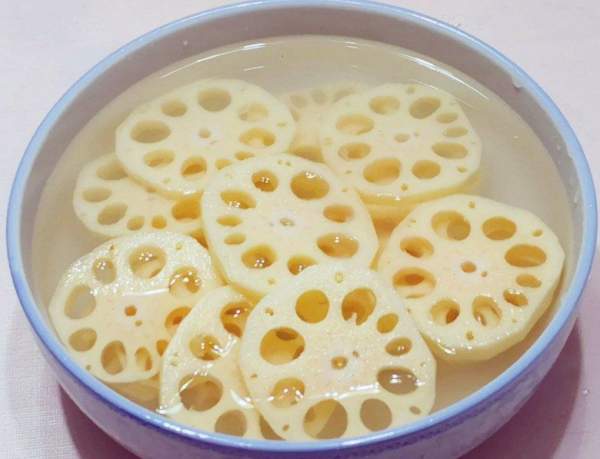 Lưu ý, thái được lát củ sen nào hãy cho ngay vào bát nước có pha sẵn vài thìa giấm trắng. Giấm sẽ giúp củ sen trắng hơn, thậm chí là giòn ngon hơn.