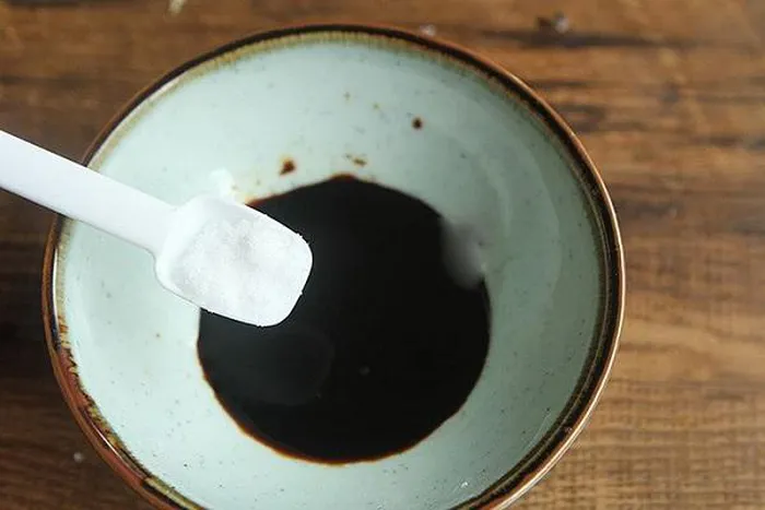 - Cho 1 thìa rượu nấu ăn, 2 thìa nước tương, 3 thìa dấm trắng, 4 thìa đường và 5 thìa nước vào một chiếc bát nhỏ, khuấy đều.