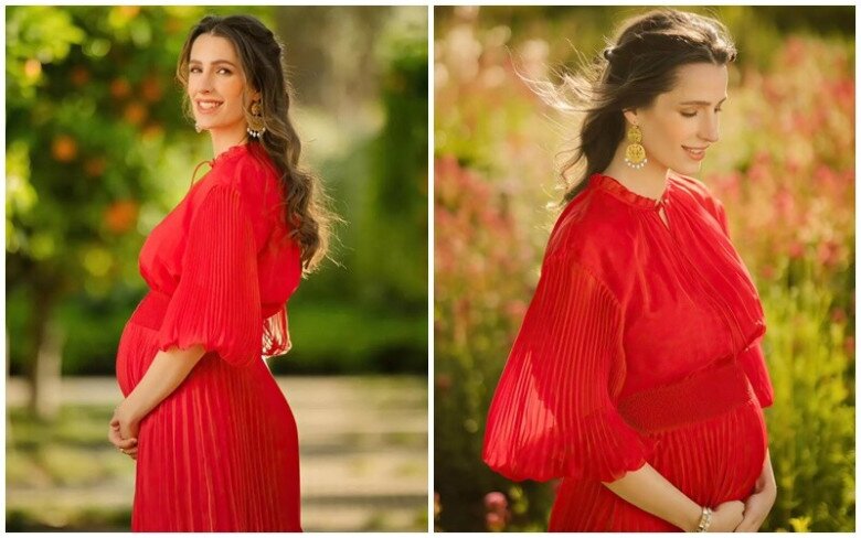 Ngay từ những tháng đầu thai kỳ, Rajwa vẫn xuất hiện đều đặn trong các sự kiện ngoại giao cùng Thái tử Hussein. Dù bụng bầu chưa lộ rõ, nhưng ánh mắt dịu dàng, khuôn mặt sáng ngời và vẻ điềm đạm của cô khiến ai cũng cảm nhận được sự biến chuyển thiêng liêng đang diễn ra.