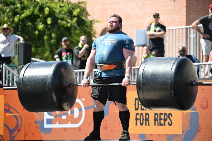 Rayno Nel, 30 tuổi, lực sĩ người Nam Phi, vô địch cuộc thi Người đàn ông khỏe nhất thế giới tại California ngày 18/5. Ảnh: X/SBD World's Strongest Man
