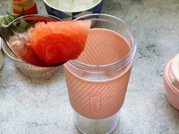 Dưa hấu cắt thành các miếng nhỏ vừa. Bỏ hạt rồi cho vào máy xay.