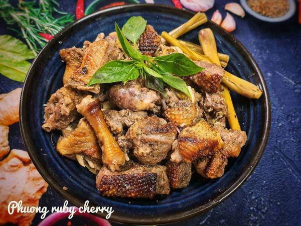 Những miếng thịt ba chỉ chiên đậm đà gia vị, ngọt, thơm mùi sả thực sự hấp dẫn.