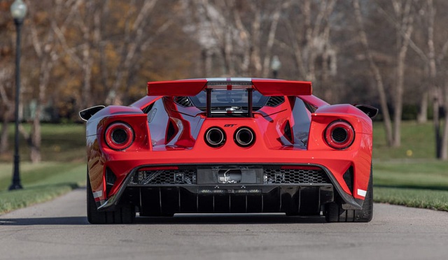 Xe trang bị ống xả kép có màu bạc. Đây chính là tùy chọn ống xả titan do hãng xe Mỹ cung cấp, được hãng Akrapovic thiết kế riêng cho mẫu Ford GT, giá khoảng 14.100 USD, tương đương gần 330 triệu đồng.