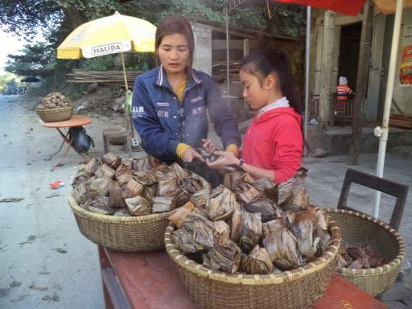 Sau khi hông chín, bánh gai được buộc thành từng cặp