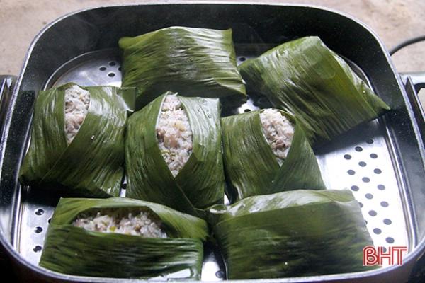 Các viên thịt được gói trong lá chuối