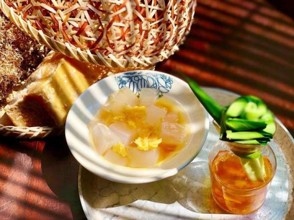 Miếng xu xa có màu vàng đẹp mắt, thanh nhẹ và đặc biệt phảng phất hương vị tanh nồng của biển. Nước đường ngọt, mùi gừng cay tròn trịa, nước cốt dừa béo ngậy và miếng bột dai dai… chính là điểm lý thú tạo nên sức hấp dẫn cho xu xa.