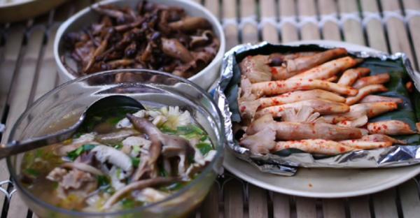 Riêng Đồng Hao, anh dùng nấm mối đã thu hái được đem nấu canh gà. Gà chọn loại thả vườn có thịt chắc, thơm và không bở, làm sạch rồi chặt miếng vừa ăn. Anh băm nhỏ hành tím, cho vào nồi dầu sủi tăm, đảo vàng đều rồi cho thịt gà xào săn, thêm nước nấu sôi. Nấm mối được cho vào khi thịt gà đã chín, không nấu nấm lâu vì dễ bị nhũng, mất ngon.