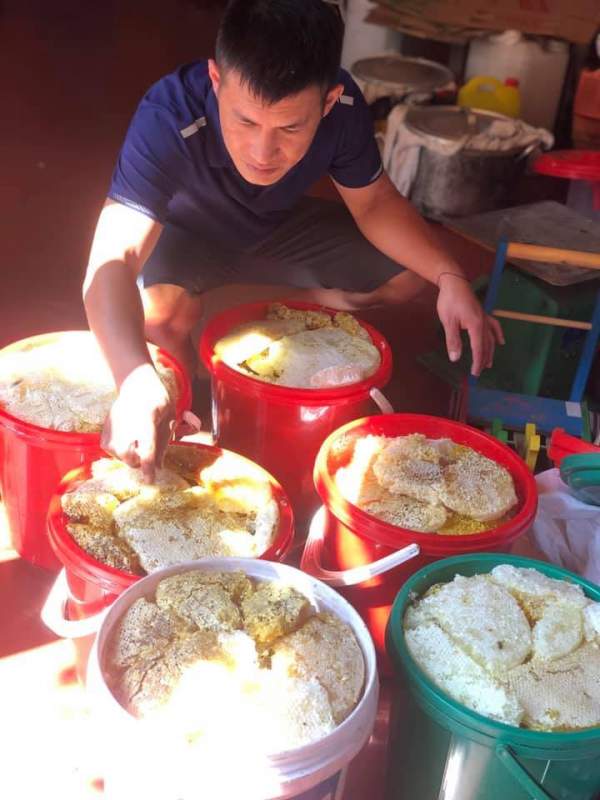 Anh Thành tất bật chuẩn bị mật ong khoái để giao cho khách.