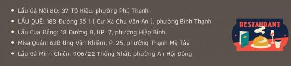 Gà để nấu lẩu nên chọn loại gà ta thả vườn, thịt săn chắc, ít mỡ. Sau khi làm sạch, gà chặt miếng vừa ăn, ướp cùng muối, tiêu, hành tím băm và sả để thấm vị. Khi hầm trong nồi lẩu, thịt gà vừa mềm, vừa thơm mà vẫn giữ độ ngọt đặc trưng.