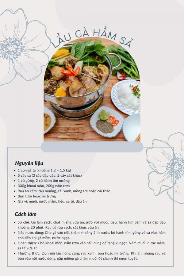 Không chỉ ngon miệng, lẩu gà hầm sả còn mang lại cảm giác ấm áp, dễ chịu. Tinh dầu sả giúp thanh lọc, giải cảm, kết hợp cùng thịt gà bổ dưỡng, tạo nên món ăn vừa ngon vừa tốt cho sức khỏe. Một nồi lẩu gà hầm sả không chỉ làm ấm bụng mà còn gắn kết tình thân, để mỗi bữa ăn trở thành dịp sum vầy.