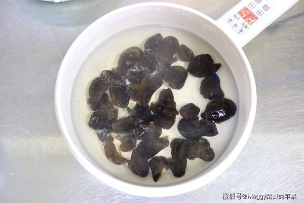 Nấm ngâm nước cho mềm rồi chần sơ qua nước nóng.