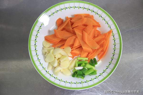 Cắt cà rốt, hành, tỏi thành lát mỏng.