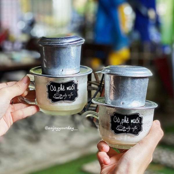 Một ly cà phê muối gồm lớp sữa đặc dưới cùng, thêm lớp sữa lên men và trên cùng là muối. Loại cà phê này chỉ pha bằng phin nhôm truyền thống để giữ nguyên vị. Khi uống, bạn phải chờ cho cà phê nhỏ chậm rãi từng giọt xuống, sau đó khuấy đều và thưởng thức. Thế mới nói, khi đến Huế nhất định phải thử cà phê muối, vì ngoài là món uống đặc trưng, cà phê muối còn thể hiện nét văn hóa và nhịp sống của vùng đất này.