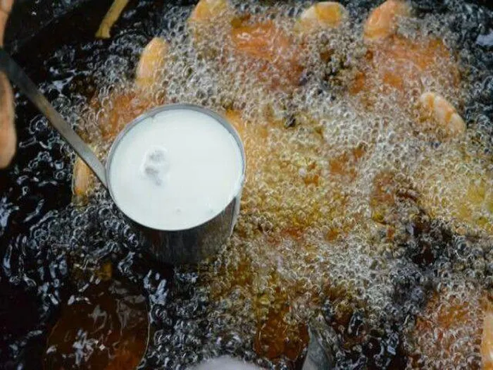 Chiếc cóng đã được đổ đầy bột và nhân sẽ được nhúng vào chảo dầu đang sôi trong khoảng chừng 2-3 phút