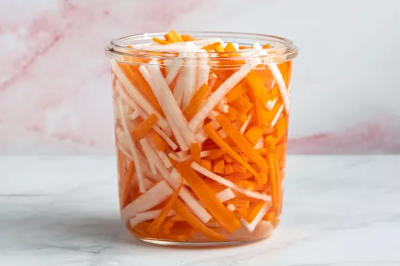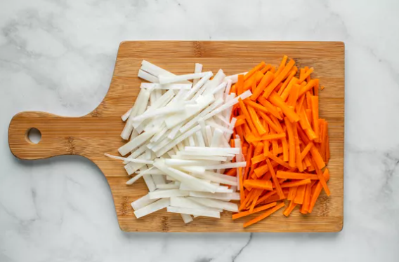 - Giữ cho các lát cà rốt và củ cải có kích thước đồng đều sẽ nhìn hấp dẫn hơn, đặc biệt để ngấm gia vị đều hơn.