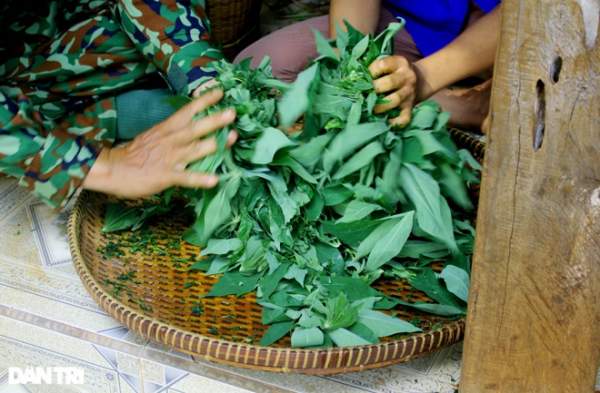Giai đoạn khó khăn nhất chính là vò lá mì. Lá mì càng vò nát sẽ càng ngon, vị bùi hơn. Nếu số lượng nấu nhiều thì bà con thường dùng cối để giã trong nhiều giờ.