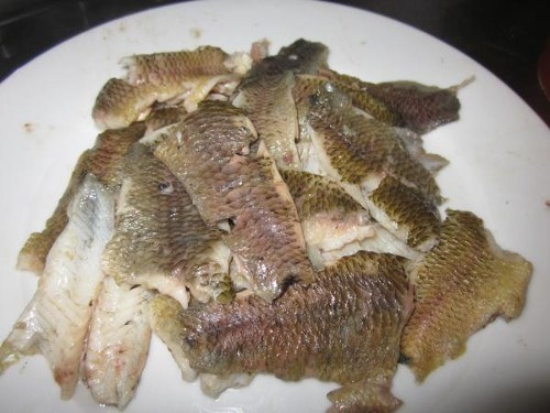 Cá chín vớt ra để nguội, gỡ lấy thịt cùng với trứng cá vàng ươm, rút hết xương sao cho thịt cá vẫn còn nguyên miếng không bị vỡ, nát. Sau đó, đem cá ướp với nước mắm, nước gừng, thêm chút hạt tiêu cho thơm.